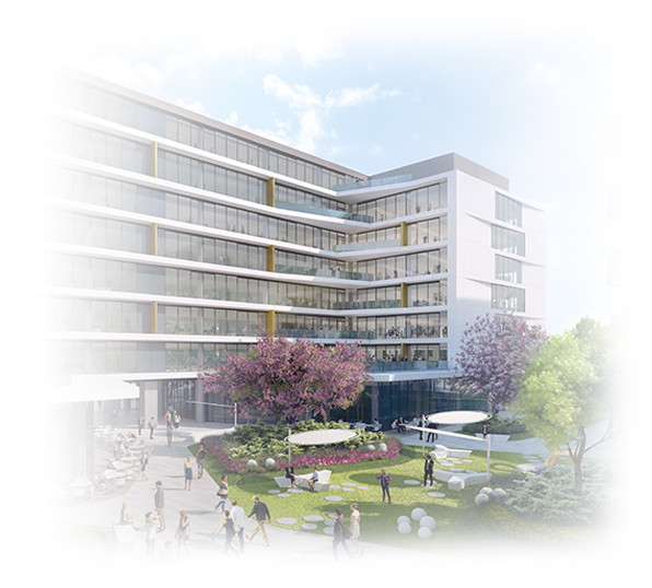 The Green Court Office project totals 20,200 sqm GLA and forms part of a wider-ranging, mixed-use development, comprising the residential and retail functions, set around a beautiful shared courtyard. The “A+” category office complex offers large and efficient floor plates, each with access to private terraces overlooking the spacious green yard. This nearly-zero-energy building (NZEB) will moreover be certified BREEAM Excellent.